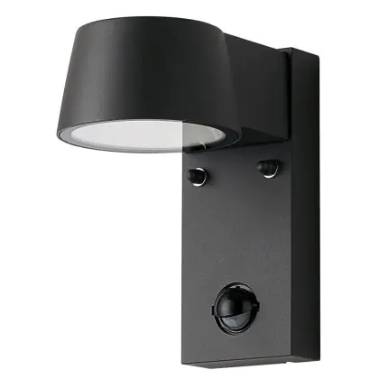 Descrizione D'Lite Luce Da Parete Lira Nero 7W 600lm 830 Luce Calda - | IP54 - Sensore Di Movimento