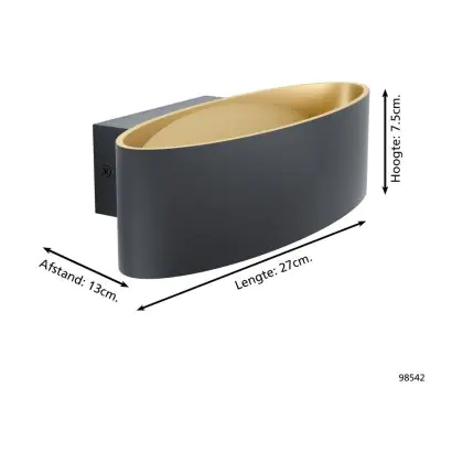 Eglo Luce Da Parete Maccacari Aluminium Acciaio Nero Oro 10W 1300lm - 830 Luce Calda - | IP20