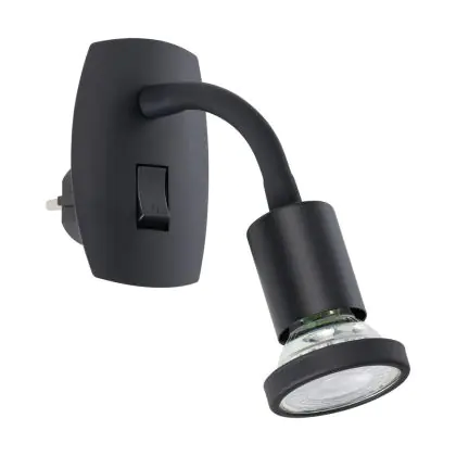 Eglo Luce Da Parete Parrini Lamp con Presa Nero 4.5W 345lm - 830 Luce Calda - | IP20 - Incl. 1x GU10