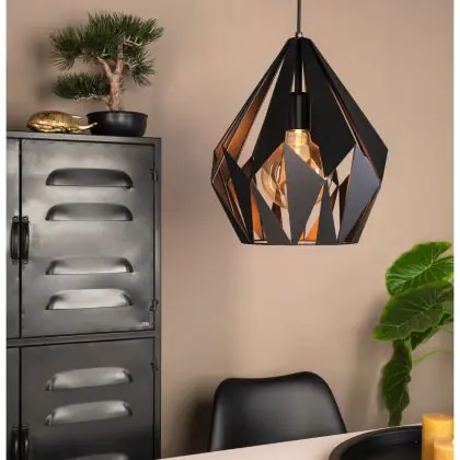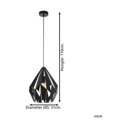 Eglo Luce Pendente Carlton 1 Acciaio Nero | IP20 - Adatto per 1x E27