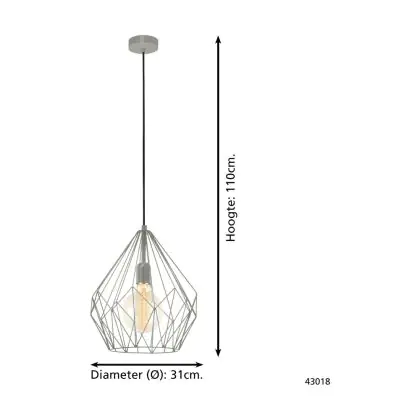 Eglo Luce Pendente Carlton Acciaio Grigio | IP20 - Adatto per 1x E27