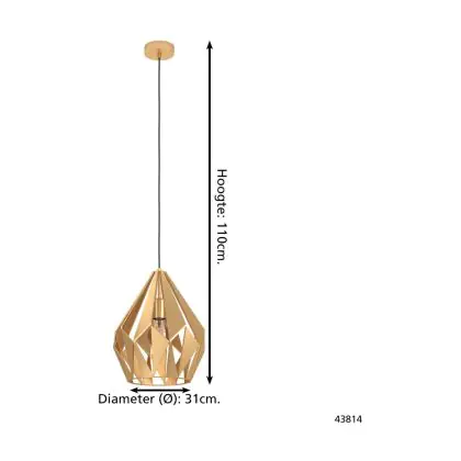 Eglo Luce Pendente Carlton Acciaio Oro | IP20 - Adatto per 1x E27