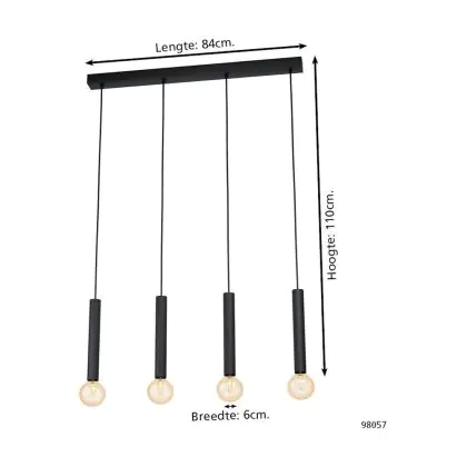 Eglo Luce Pendente Corteva Acciaio Nero | IP20 - Adatto per 4x E27