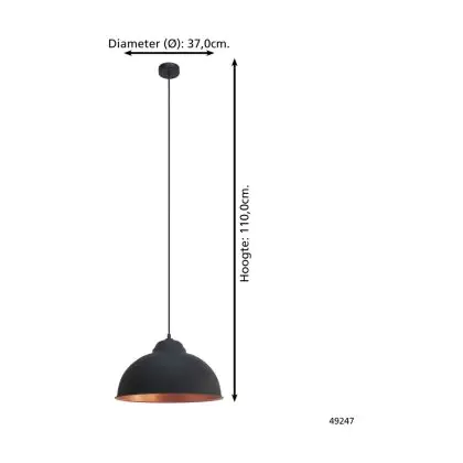 Eglo Luce Pendente Truro 2 Acciaio Nero Rame | IP20 - Adatto per 1x E27