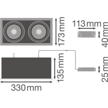 Descrizione Ledvance Faretti LED Piazza Multi Inclinabile Nero-Bianca 2x30W 5400lm 38D - 830 Luce Calda | Ritaglio 320x160mm