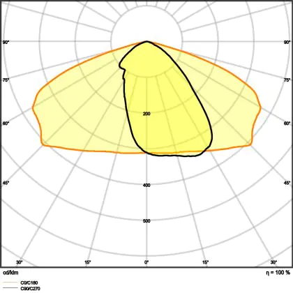 L'alloggiamento impermeabile di questa sorgente luminosa non è l'unica ragione per cui è perfetta per l'uso all'aperto. Infatti bisogna considerare anche la distribuzione della luce di questa lampada stradale, che ha apertura del fascio luminoso di 25x145° ed emette luce di colore 3000K - Luce Calda.