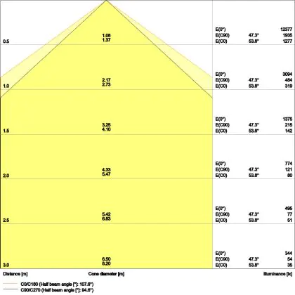 L'apertura del fascio luminoso indica l'angolo del fascio di luce proveniente da una lampada o lampadina. Si misura in gradi (D) e più piccolo è l'angolo, più piccola è l'apertura del fascio di luce.