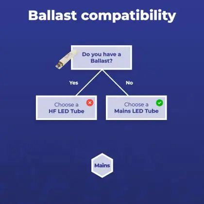 Quando installi un tubo LED è importante controllare il wattaggio e la lunghezza del tubo fluorescente da sostituire. Questo T5 LED da 26W è il sostituto per un tubo fluorescente di 49W e con lunghezza di 1463mm. La tecnologia LED fa risparmiare fino al 50% sui costi dell’energia comparato con un T5 fluorescente.