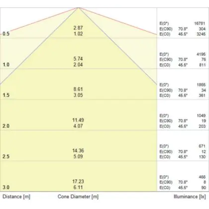 L'apertura del fascio luminoso indica l'angolo del fascio di luce proveniente da una lampada o lampadina. Si misura in gradi (D) e più piccolo è l'angolo, più piccola è l'apertura del fascio di luce.