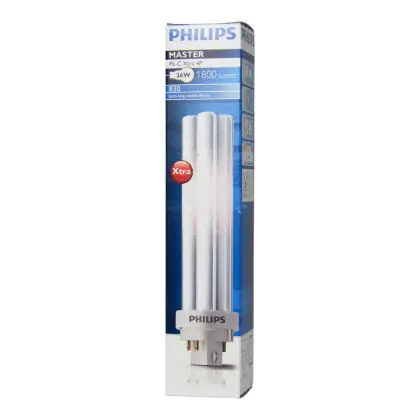 Le Philips PL-C Xtra 26W 830 4P (MASTER) sono lampade fluorescenti compatte a basso contenuto di mercurio davvero efficienti. Queste lampade fluorescenti a basso consumo sono un'ottima scelta in termini di rispetto dell'ambiente in quanto: presentano un basso contenuto di mercurio, hanno una lunga vita (più che doppia rispetto le corrispondenti lampade della categoria Philips PL-C classica a 4 perni), garantiscono un consistente risparmio energetico. Esse inoltre assicurano performance ottimali di illuminazione per periodi di accensione lunghi. L'attacco di queste lampade é del tipo G24q-3 ed é dotato di 4 pin (perni). La potenza di tali lampade é di 26W. Ricorda: quando sostituisci le tue lampade fluorescenti compatte devi mantenere il medesimo attacco, numero di pin (perni) e potenza delle tue vecchie lampade, altrimenti non sarai in grado di procedere con l'installazione.