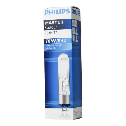 Le Philips CDM-TP 70W 842 PG12-2 (MASTERColour) sono lampade a scarica compatte con protezione tubolare che garantiscono stabilità di colore per tutta la loro durata di vita pari a 16.000 ore. Queste lampade, che emettono una luce brillante, hanno una potenza pari 70W e presentano una base del tipo PG12-2. L'indice di resa cromatica si colloca nell'intervallo di 80-89Ra, a testimonianza dell'elevata resa dei colori.