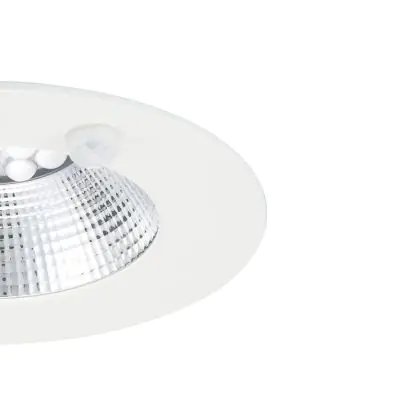 Descrizione Sylvania Downlight LED Insaver Slim 175 PIR / WIDE BEZEL Aluminium Bianca 9.5W 1150lm 70D - 830 Luce Calda - | Ritaglio 175mm - IP44