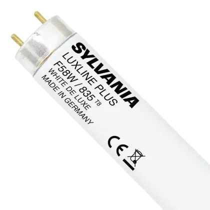 I Sylvania Luxline Plus T8 58W - 835 Luce Calda | 150cm sono i tubi più comuni e tra le lampade più vendute nel mondo. Questi tubi T8 (TL-D per Philips) hanno una lunghezza la quale corrisponde alla potenza di 58W.